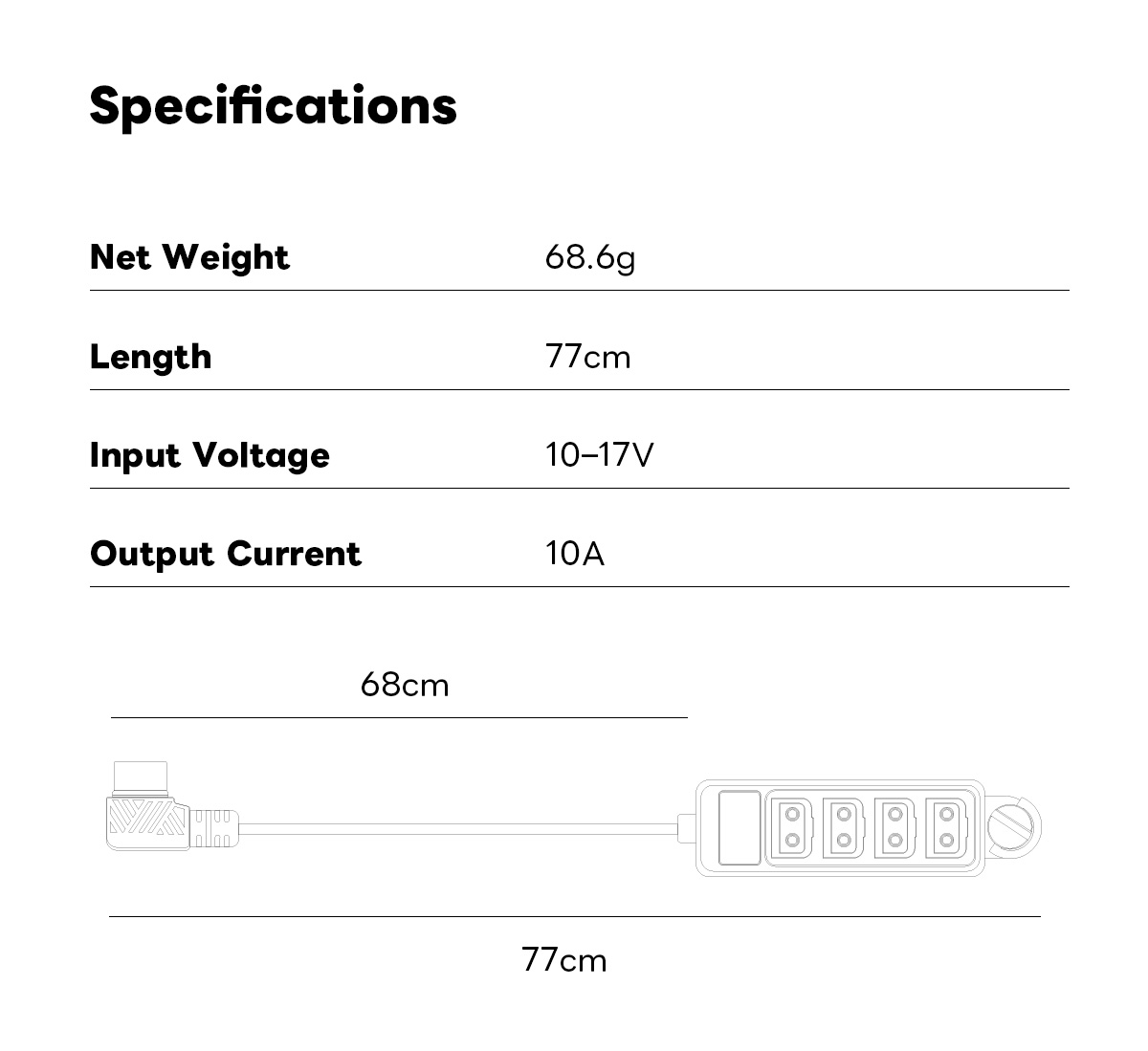 77cm 1 to 4 D-Tap Splitter with 1/4 Screw&Voltage Monitor