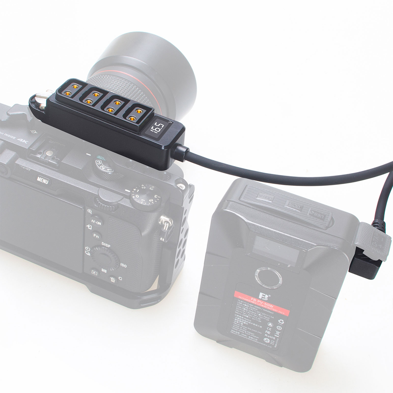 F550X2 360 Degree Rotatable Dual Sony NPF-L Series Dummy Battery with DC with Lock to D-tap Power Cable