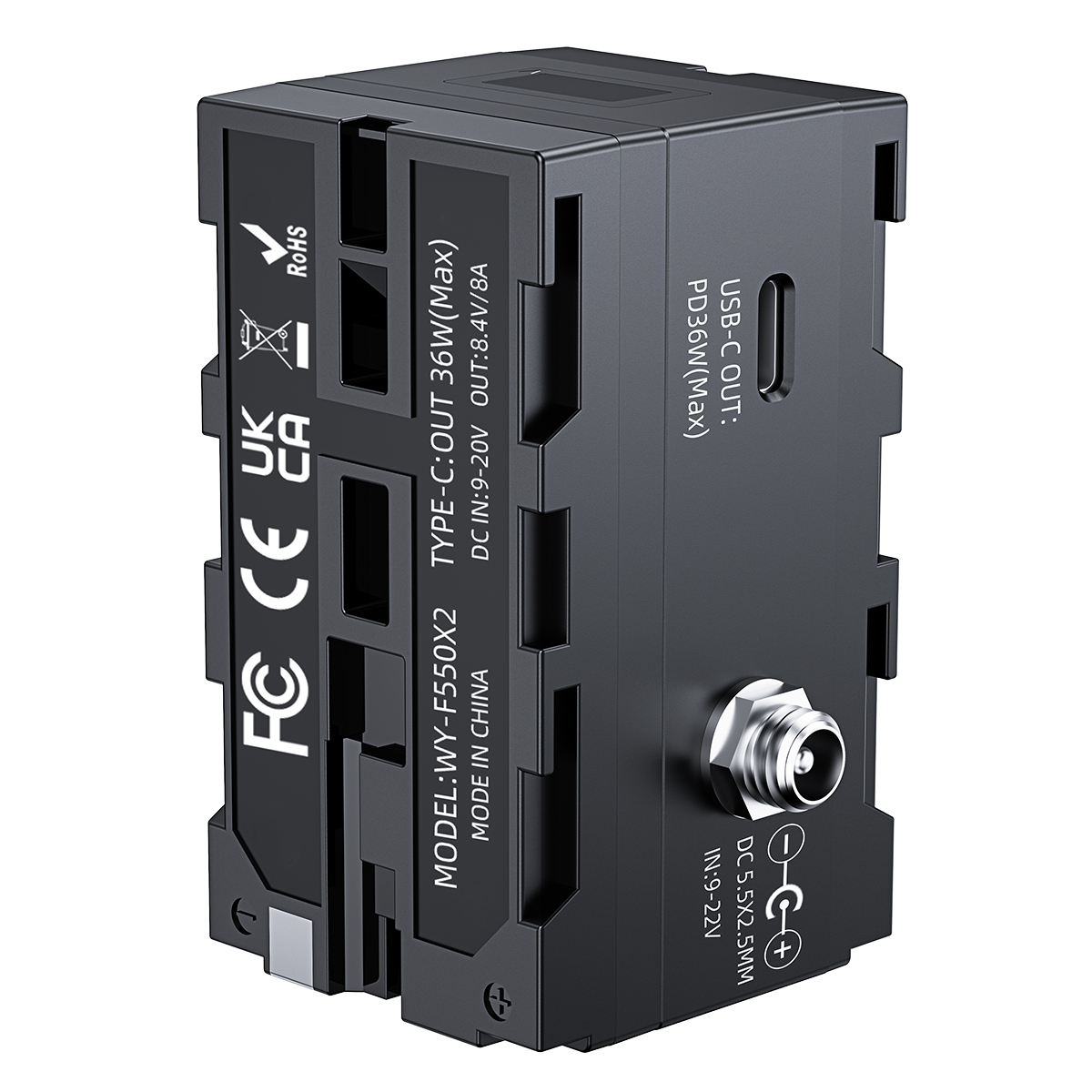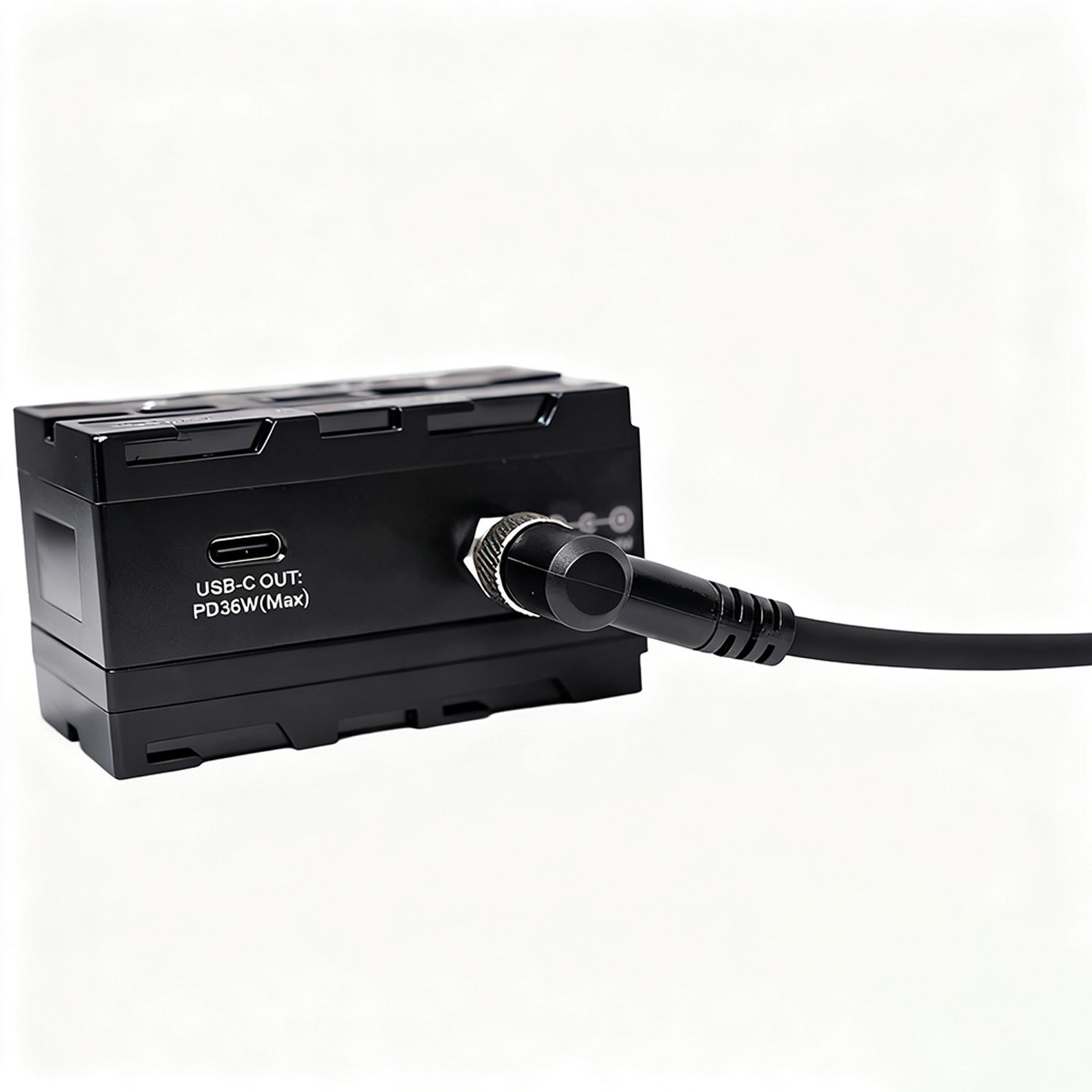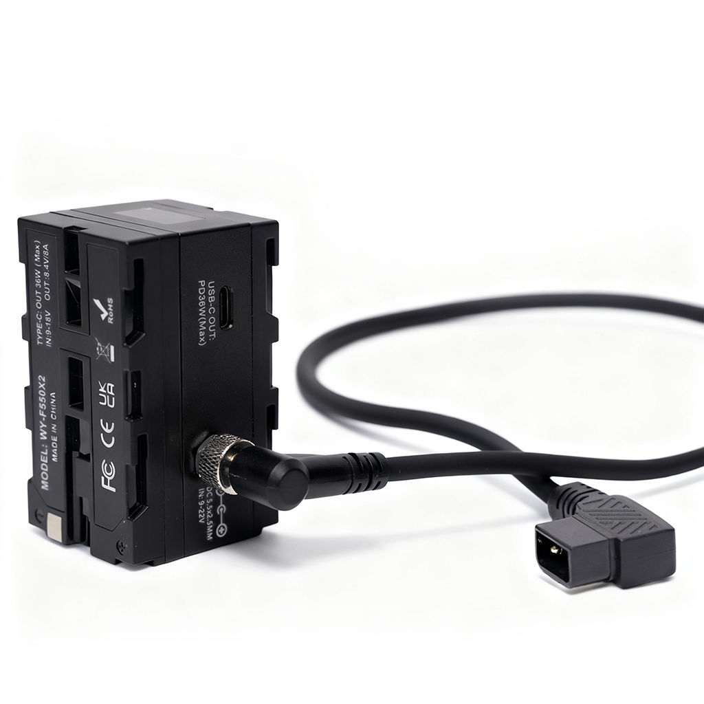F550X2 360 Degree Rotatable Dual Sony NPF-L Series Dummy Battery with DC with Lock to D-tap Power Cable