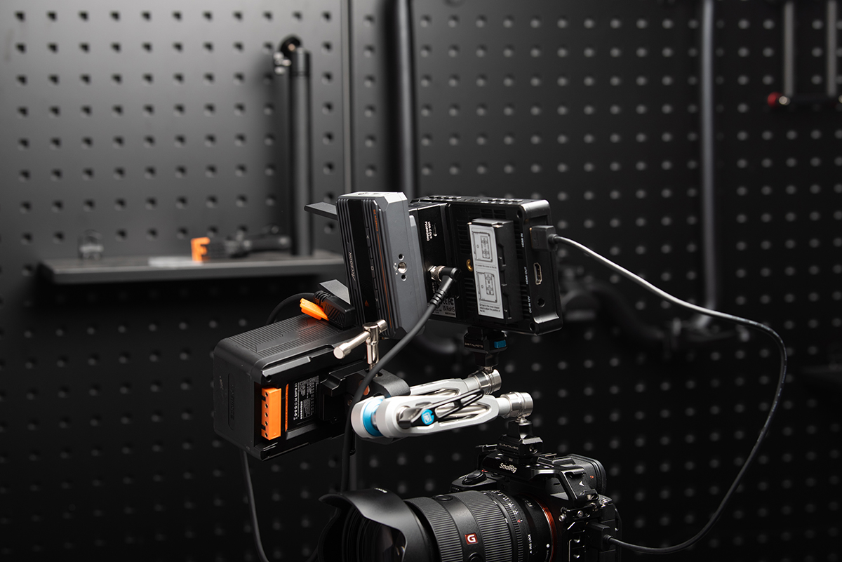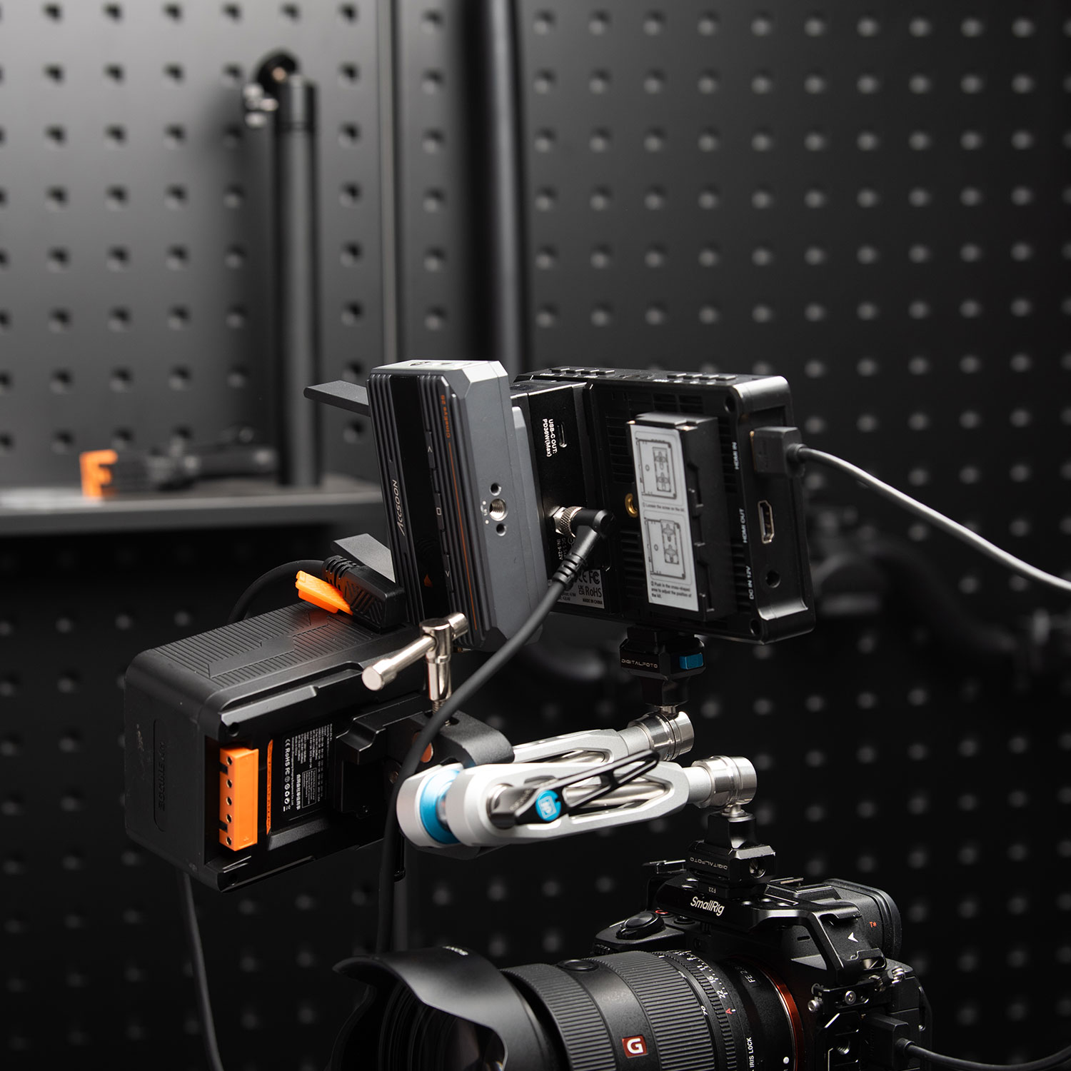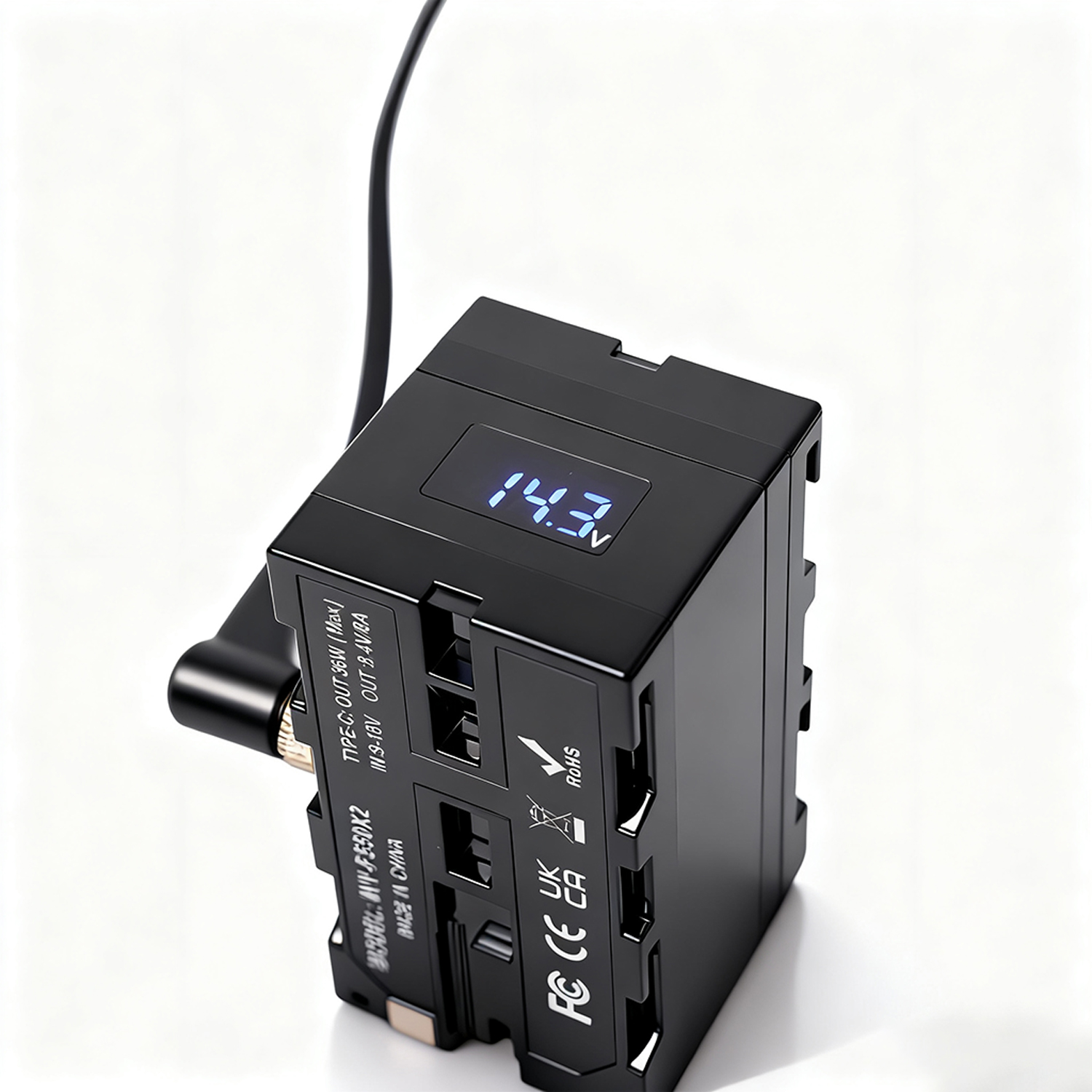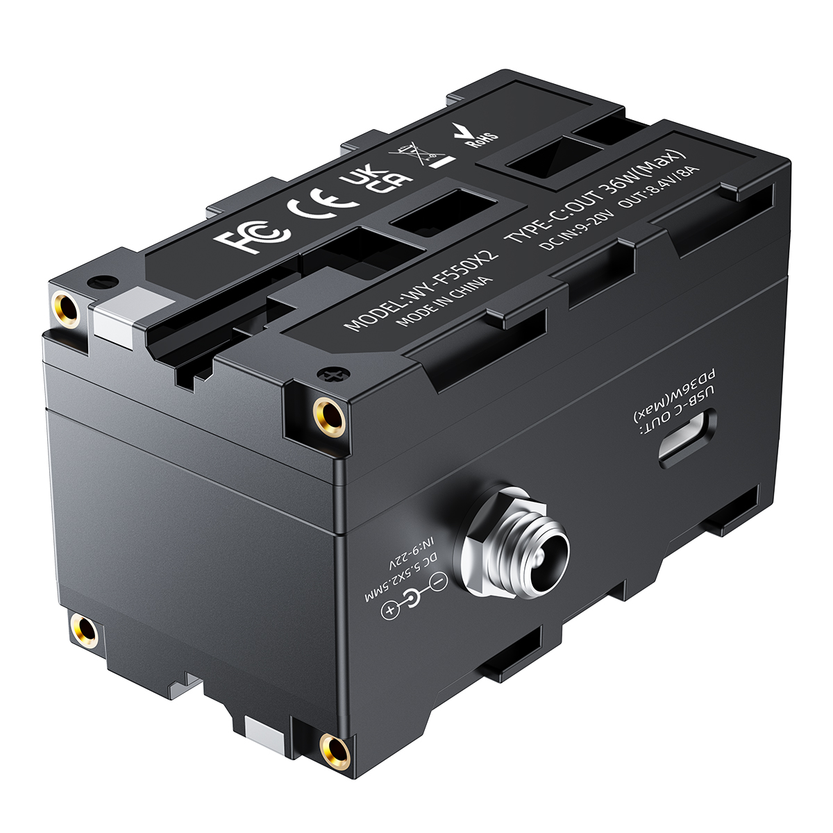 F550X2 360 Degree Rotatable Dual Sony NPF-L Series Dummy Battery with DC with Lock to D-tap Power Cable