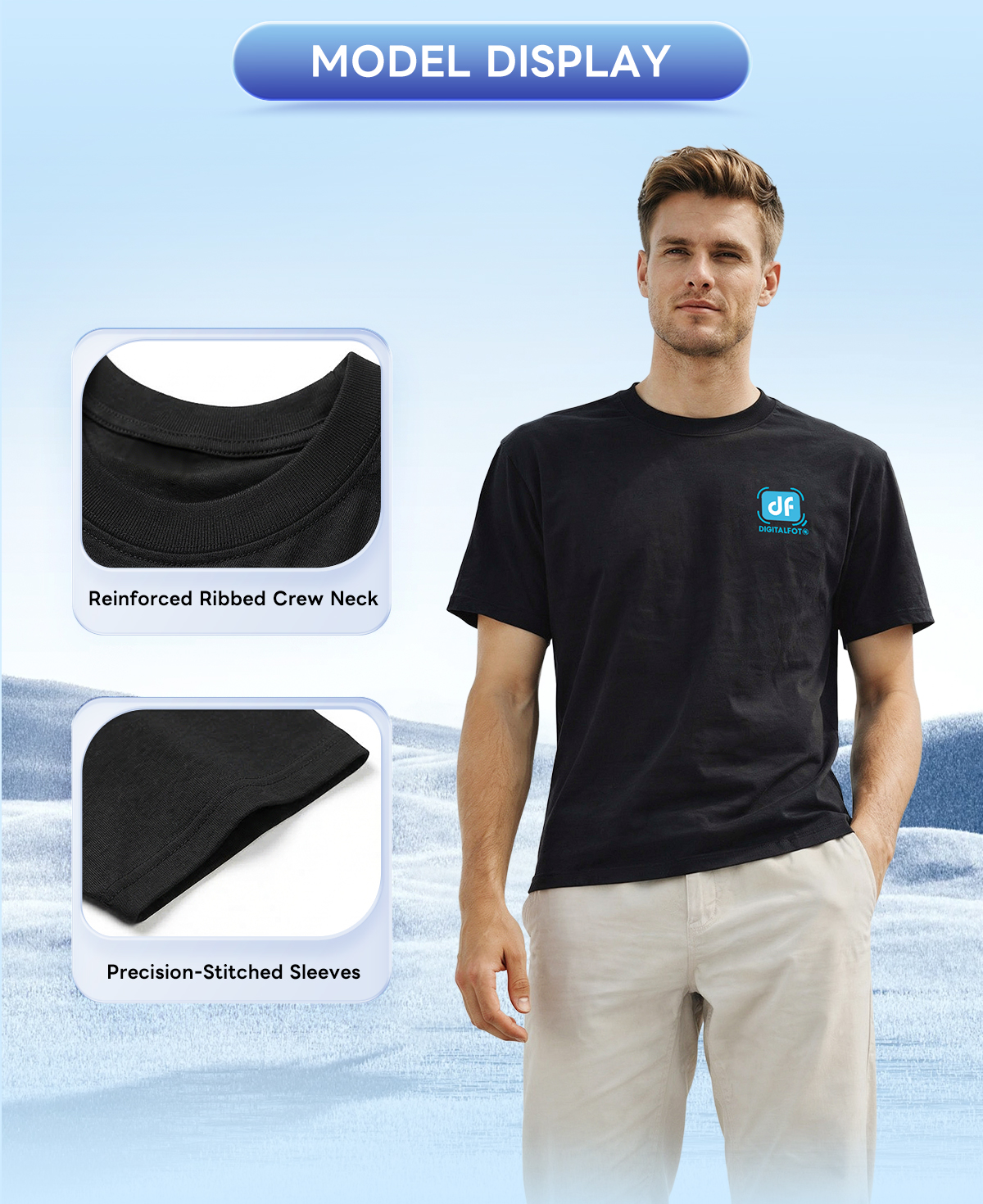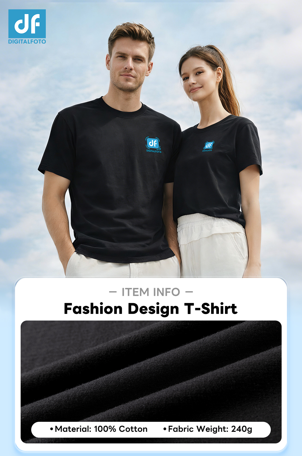 FTB DIGITALFOTO Brand Black T-Shirt with Fashion Design