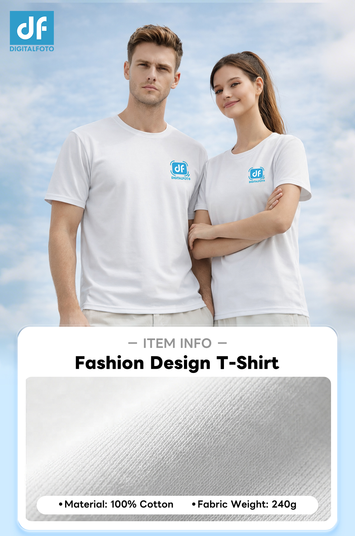 FTW DIGITALFOTO Brand White T-Shirt with Fashion Design