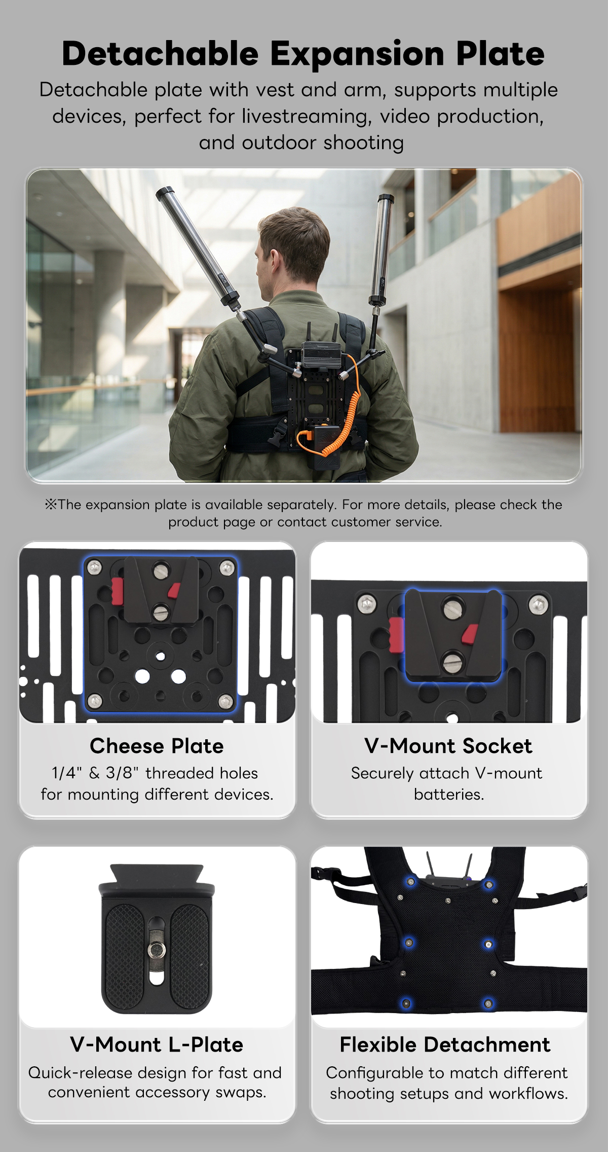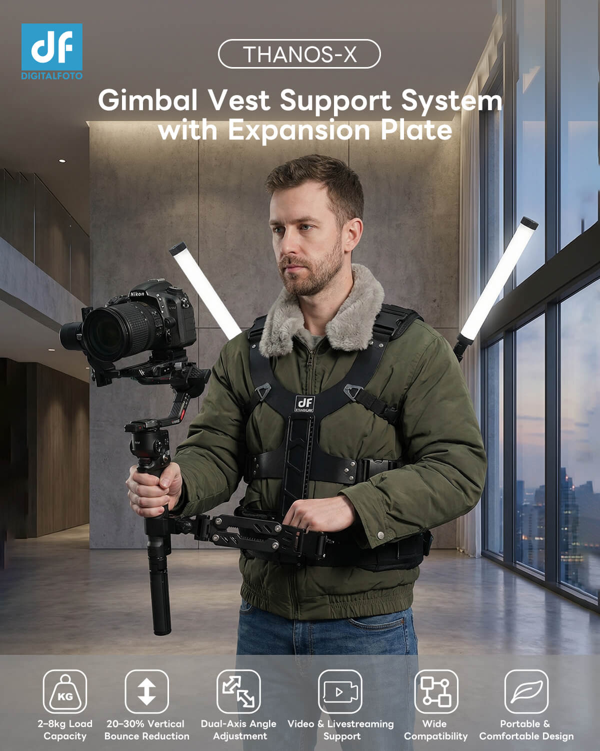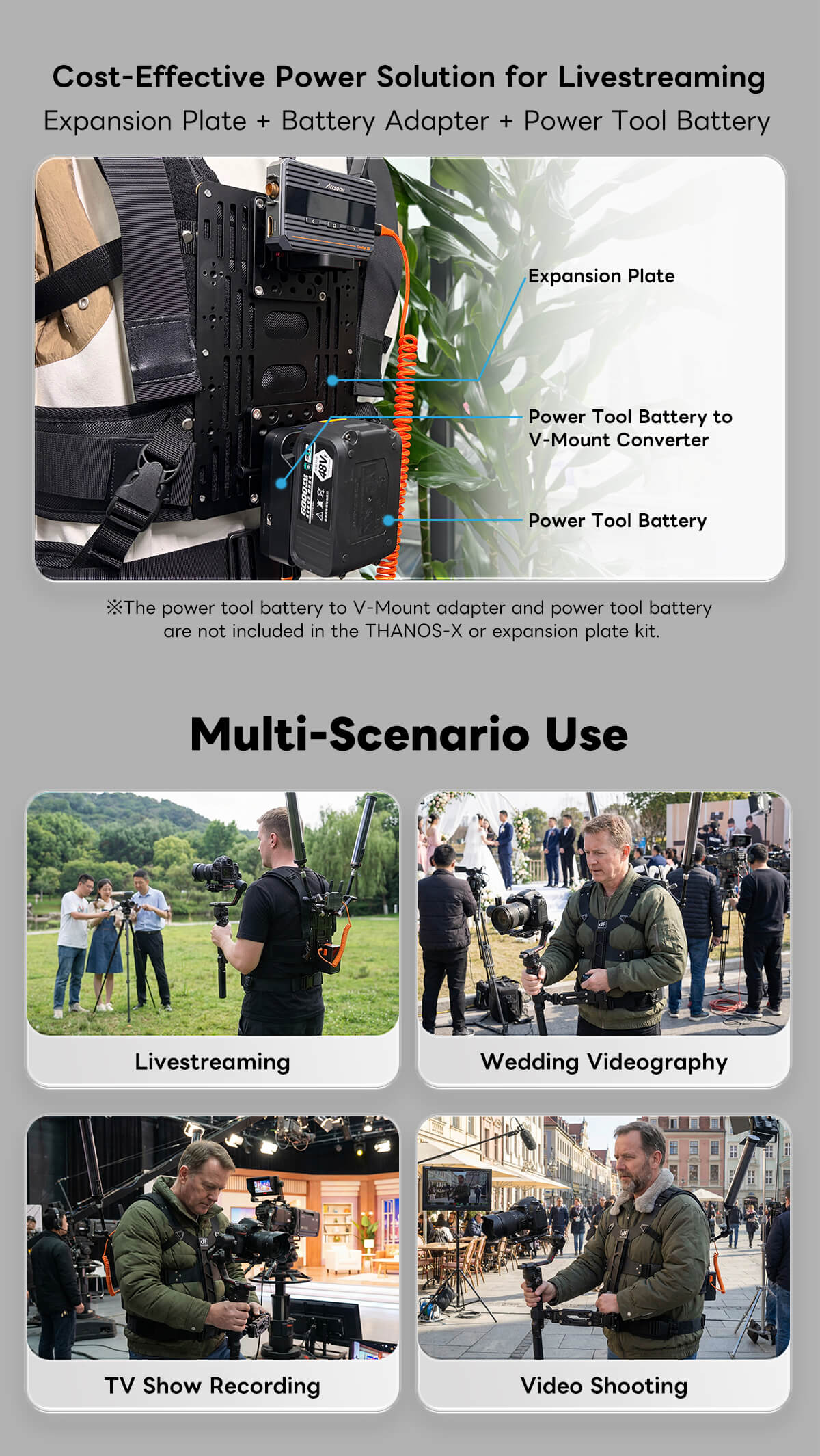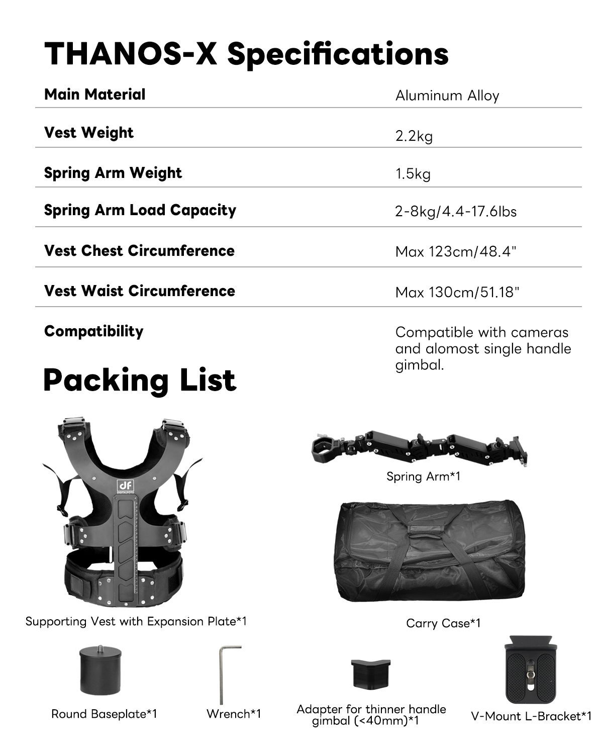 THANOS-X DJI RS2 RS3 PRO RS4 PRO RS5 Gimbal Supporting Vest System with V Mount Battery/Wireless Transmitter Plate